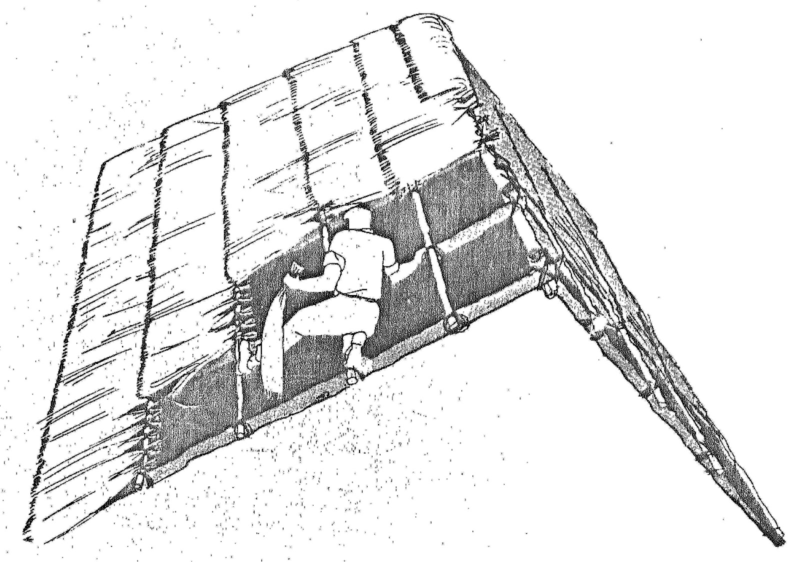 De preferencia tendrán en en la parte superior una horqueta para apoyar los elementos horizontales que reciben la techumbre. Sobre estos elemento apoyados entre poste y poste se atarán las piezas inclinadas que forman el techo. Su separación no será mayor de 50 centímetros. Por último se amarrarán otros morillos de menor díametro colocados perpendicularmente y que son los que reciben los manojos de palma.